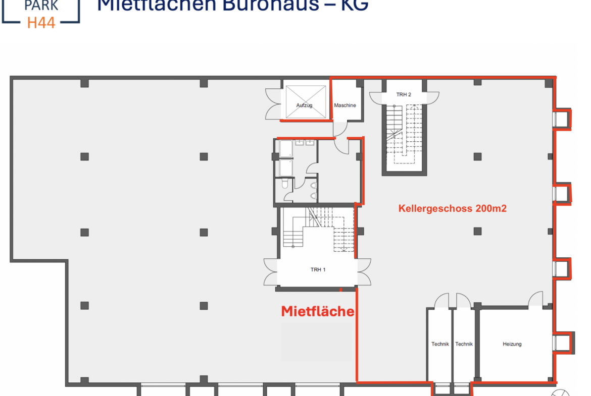 Zur Vermietung steht eine großzügige Nutzfläche im Untergeschoss des Bürogebäudes zur Verfügung. Diese eignet sich ideal als Lager, Archiv oder allgemeine Storage-Fläche.