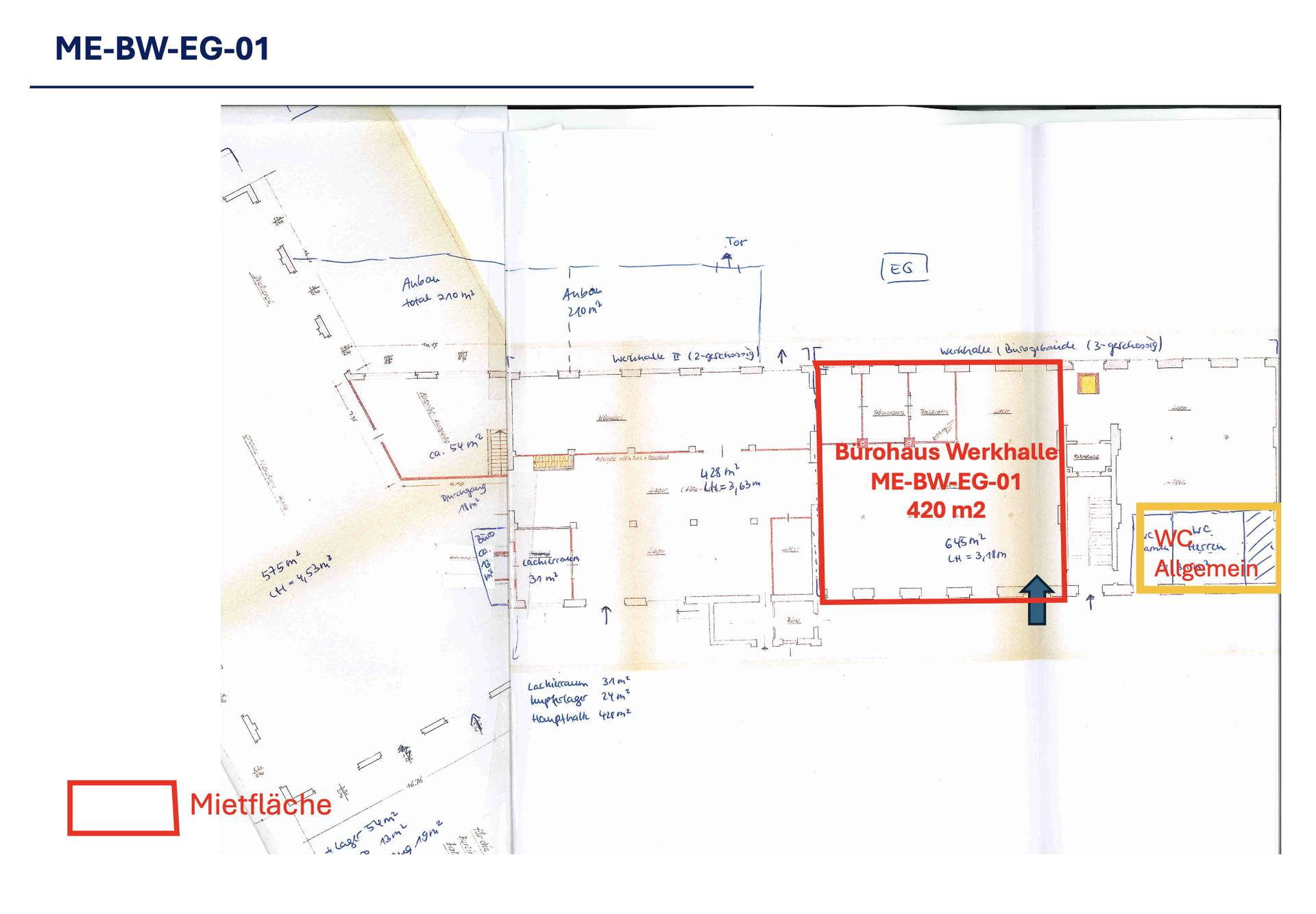 – zentrale WC-Anlage im EG für die Lagerhallen
