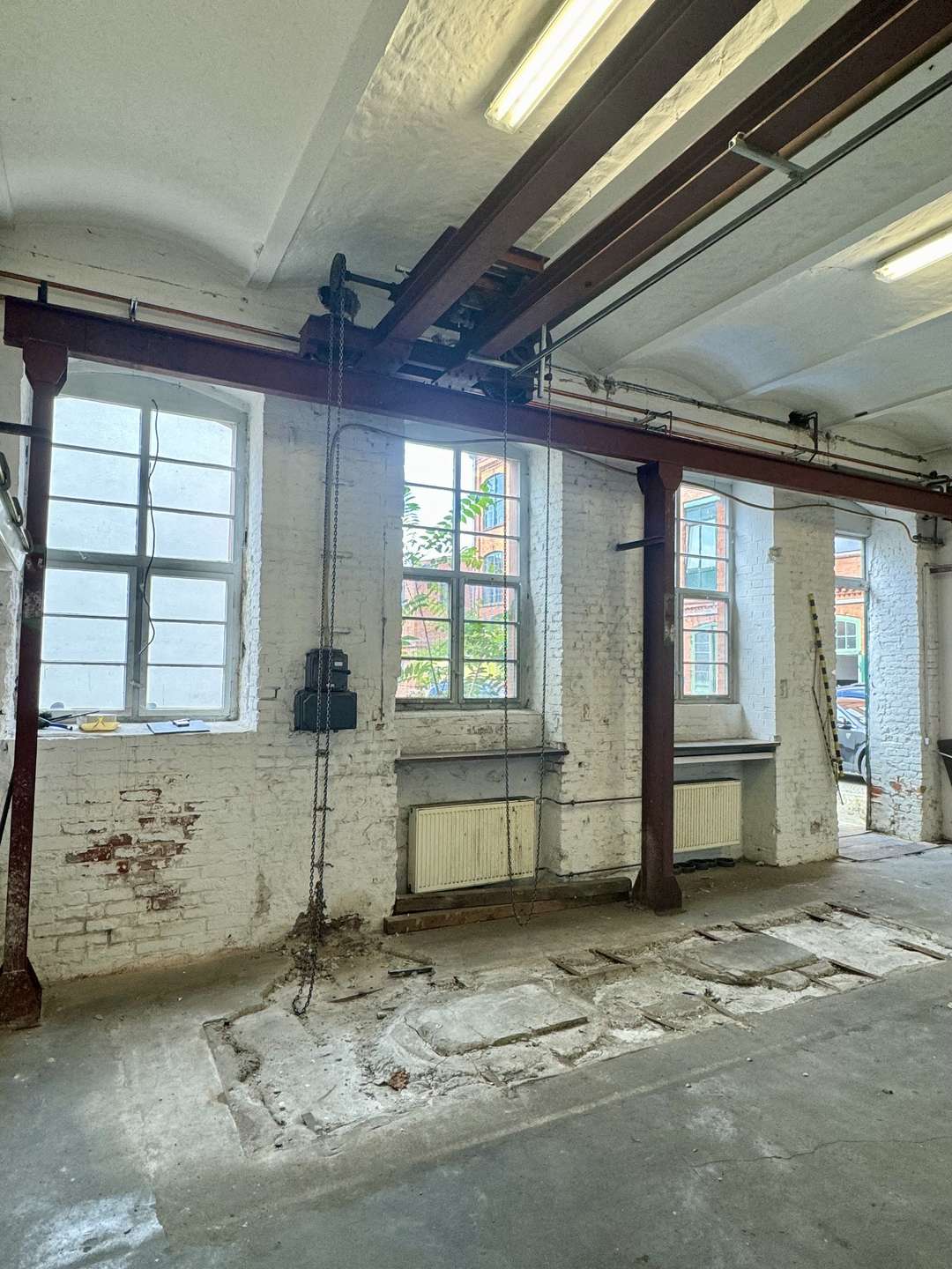 Die Lagerhallen (Allgemein) der Liegenschaft verfügen über großzügige Deckenhöhe und haben eine hohe Bodentraglast für z.B. Schwerlastregale.
